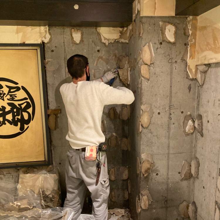 交換作業では古いクロスとボードを剥がし、下地を新しくしてから仕上げます。