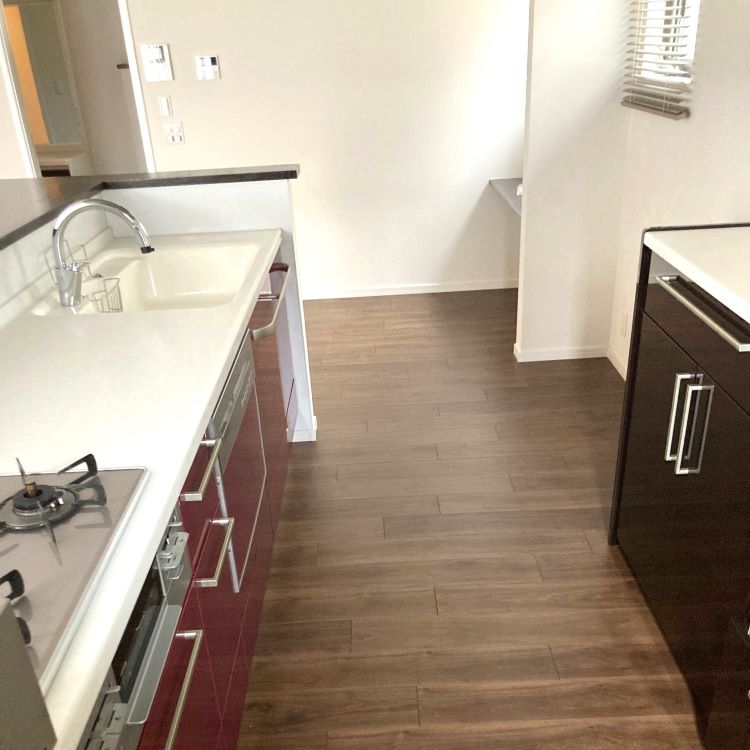 また、キッチンは廊下やリビングとつながっている間取りが多いため、張替え範囲の切り分け方によっても費用が変動します。
