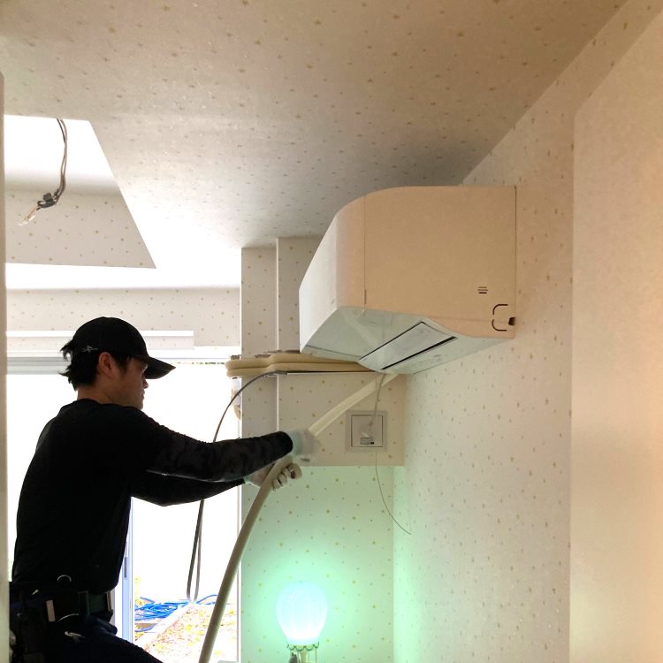 リビングにはエアコンや壁掛けテレビがあるため、この部分の処理で施工の手間と仕上がりに差が出ます。